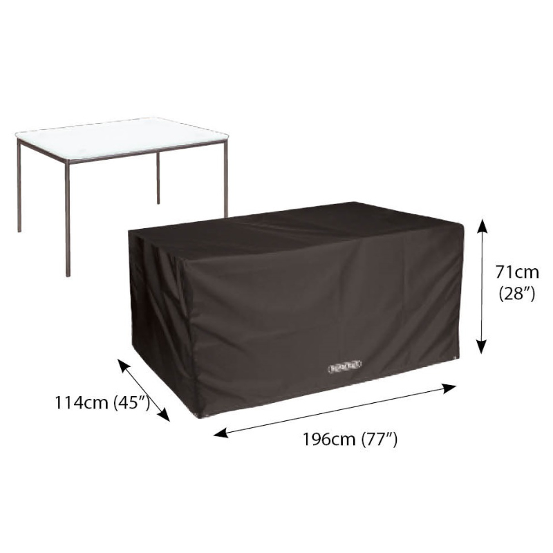 The Protector 6000 8 Seat Rectangular Table Cover will keep your dining table looking its best for longer. The 6000 range offers all-weather protection, has a water repellent coating and is UV stabilised to reduce the rate at which fading occurs. Ideal for protecting your furniture or other garden products against stains like bird droppings. Heavy duty bungee ties help secure the cover during inclement weather. Suitable for covering a 8 seater rectangular garden table.