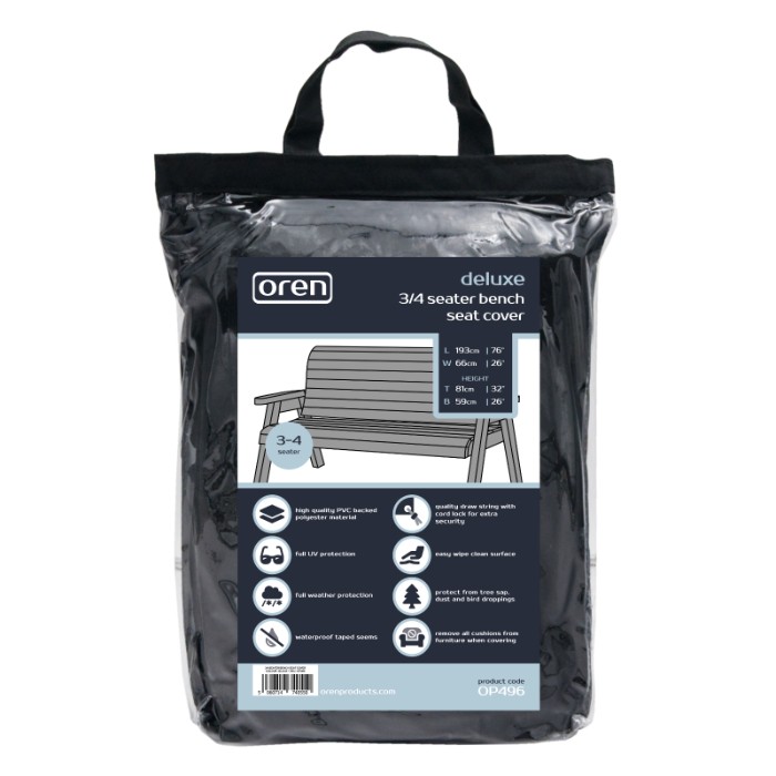 The Deluxe Bench Seat Cover offers you full protection for your garden furniture. The cover is made from strong, durable water-resistant PVC backed polyester. The material has been U.V tested for further protection and features an easy wipe surface, protecting you from all-weather types, dirt or bird droppings. It features rust-resistant brass eyelets and heavy duty security ties for secure fitting.