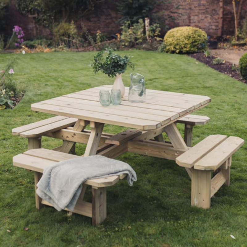 The Moorvalley 8 Seater Square Picnic Table are ideal for those wanting high quality, functional outdoor seating and dining options.