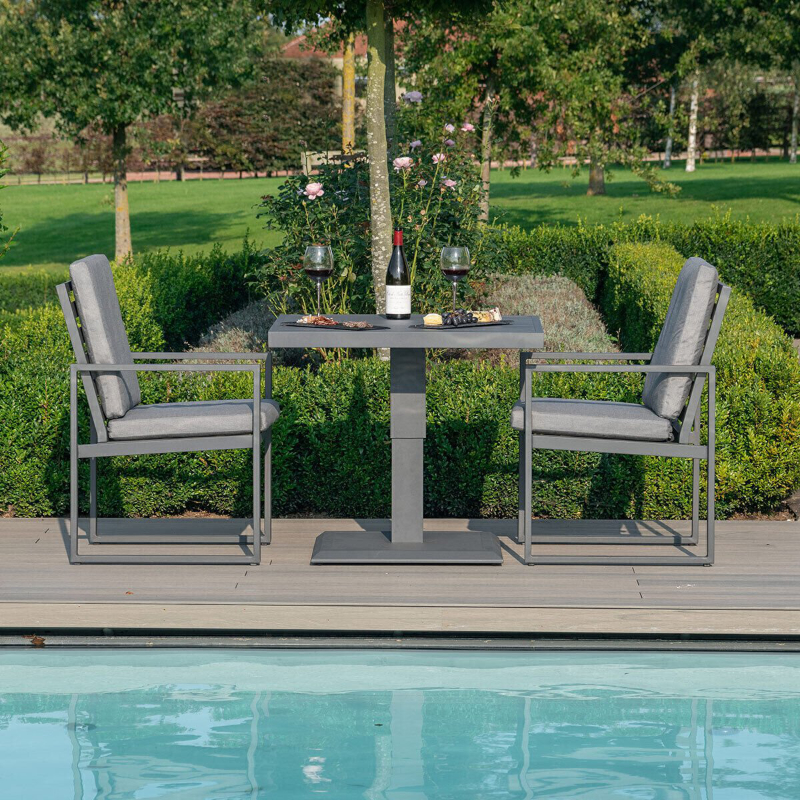 MZ Amalfi Bistro Set with Rising Table – Grey with rising table is designed to be stylish with versatility in mind. This set features sturdy maintenance-free aluminium framework and is paired with padded cushions to ensure your dining experience is as comfortable as possible. Finished with a smart aluminium rising table, the gas lift function allows you to go from dining to lounging as it transforms from a dining table to a coffee table with ease.
