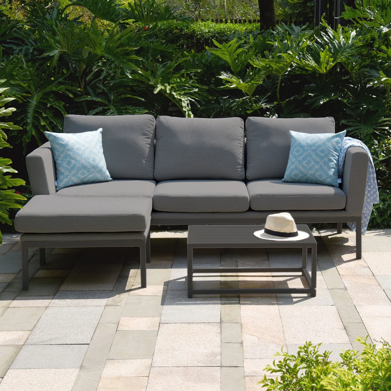 MZ Pulse 3 Seater Outdoor Fabric Chaise Sofa Set – Grey