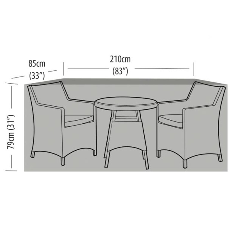 Designed to cover and protect the table and chairs of a traditional 2 seater garden bistro set. The Premium Super Tough 2 Seater Extra Large Bistro Set Cover in Black is made from high quality super tough cross laminated material. The Premium Super Tough garden furniture cover range features our unique zero fade technology, full UV protection against the sun for longer life and a wipe clean surface. The cover offers full weather protection with waterproof welded seams, while also protecting your bistro set from bird droppings, tree sap & pollution. All round draw string bottom with cord locks are included for added security. Centre Water Shedding Poles are available and are reccommended to raise the cover above the tops of your chairs and prevent water pooling. Important: Do not leave your cushions on your furniture when covered.