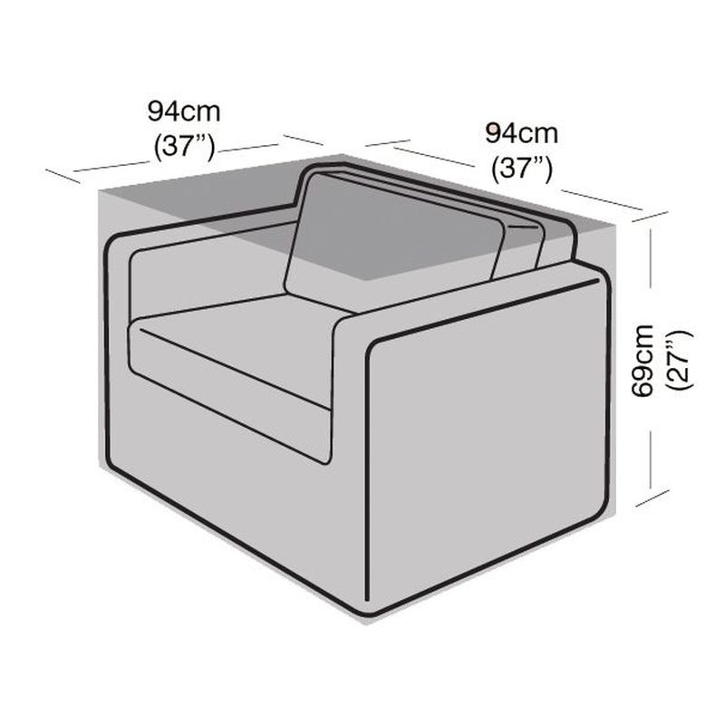 The Premium Super Tough Large Armchair Cover in Black is made from multi-layered cross laminated polyethylene grade material and designed to cover and protect your armchair. The Super Tough garden furniture cover range features our unique zero fade technology, full UV protection against the sun for longer life and a wipe clean surface. The cover offers full weather protection, while also protecting your armchair from bird droppings, tree sap & pollution. All round draw string bottom with cord locks are included for added security. Important: Do not leave your cushions on your furniture when covered.