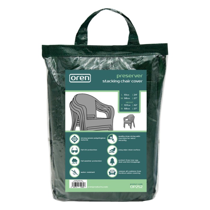 The Preserver Stacking Chair Cover offers you full protection for your garden furniture. The cover is made from strong, durable water-resistant material. The material has been U.V tested for further protection and features an easy wipe surface, protecting you from all-weather types, dirt or bird droppings.