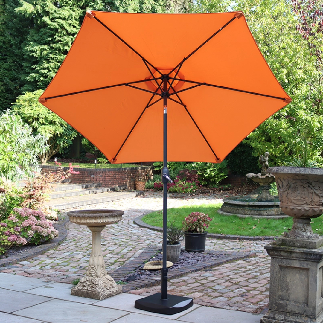 The RC 2.5m Crank And Tilt Parasol With Powder Coated Pole – Orange can be used within your dining tables or as a free standing parasol provided you use a weighted base (not included) to keep the parasol in place. This product features an easy to operate crank and tilt system which will help you to adjust the canopy position when required. This Parasol is a perfect way to add a classic modern style to bring your indoor fine dining outside while still having protection from the elements. The modern umbrella consists of a circular fabric or plastic screen stretched over hinged ribs that radiate from a central pole. The RC 2.5m Crank And Tilt Parasol With Powder Coated Pole – Orange is home delivered for ultimate convenience, removing the hassle of going out to a garden furniture centre. Our fast and free* delivery service ensures your furniture is delivered as fast as possible.