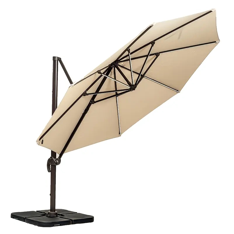 The RC 3.5m LED Cantilever Parasol – Ivory can be used to create a large spot of cooling shade over your corner lounging sets or dining table, provided you use a weighted base (not included) to keep the parasol in place. This product features a free-standing design which removes the need for a central pole and allows for versatile use. This Parasol perfect way to add a classic modern style to bring your indoor fine dining outside while still having protection from the elements. The modern umbrella consists of a circular fabric or plastic screen stretched over hinged ribs that radiate from a central pole. The RC 3.5m LED Cantilever Parasol – Ivory is home delivered for ultimate convenience, removing the hassle of going out to a garden furniture centre. Our fast and free* delivery service ensures your furniture is delivered as fast as possible.