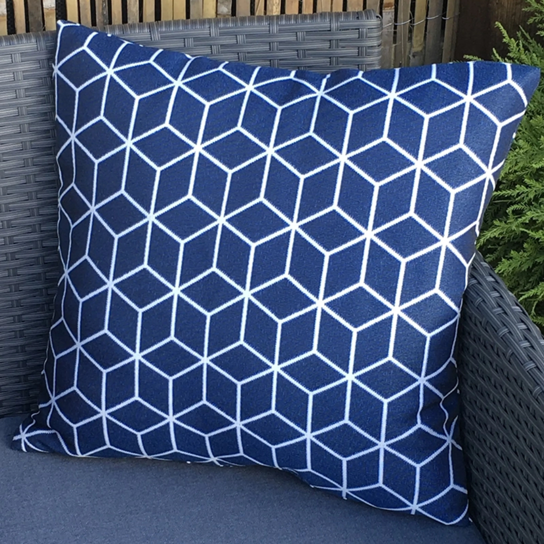 The RC Blue Geometric Scatter Cushion – Pack Of 2 is perfect for adding finishing touches to your sofa sets with some outdoor scatter cushions. Whether a small garden, balcony, terrace or a larger space, decorating your space with outdoor sofa cushions can help elevate the look and feel. Our Cushions will be sure to add a pop of colour to your garden furniture sets. Perfect to add for some extra comfort too. Mix and match from the range of scatter cushions with the other styles that we offer too. The RC Blue Geometric Scatter Cushion – Pack Of 2 is home delivered for ultimate convenience, removing the hassle of going out to a garden furniture centre. Our fast and free* delivery service ensures your furniture is delivered as fast as possible.