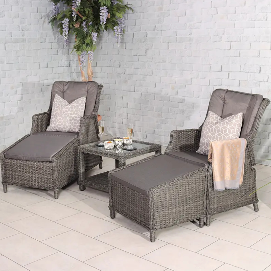 The RC Paris 2 Seater Rattan Recliner Bistro Set is perfect for that al-fresco dining experience with its timeless design. Retaining classic style with its aluminium framework construction and hand-woven, synthetic, half-round weave rattan, it offers style, comfort, strength and durability. Complete with a tempered glass top table and 2 Gas operated recliners that include footstools, seat and back cushions, it is perfect for drinks or dinner in the afternoon sun. This Bistro Set can be a haven for peaceful sitting, social events and enjoying the nature of British spring and summer. Where we like to enjoy a moment of self-care and relaxation, garden love seats and companion seats can become a perfect place to sit back and chill out. The RC Paris 2 Seater Rattan Recliner Bistro Set is home delivered for ultimate convenience, removing the hassle of going out to a garden furniture centre. Our fast and free* delivery service ensures your furniture is delivered as fast as possible.