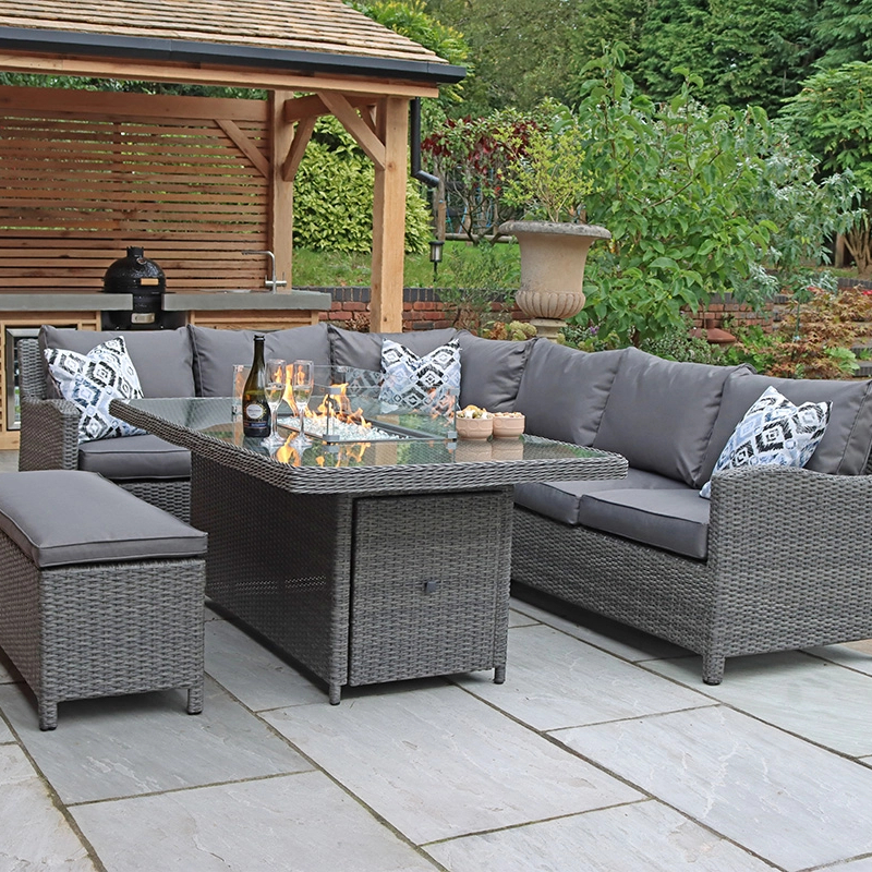 The RC Paris 5-7 Seater Rattan Deluxe Modular Corner Dining Sofa Set With Rectangular Firepit Table brings warmth from inside to outdoors making it usable all year round. From an afternoon in the sun to evening drinks, this set is perfect for those who enjoy being outdoors throughout the seasons. This Dining Set can be a haven for peaceful sitting, social events and enjoying the nature of British spring and summer. Where we like to enjoy a moment of self-care and relaxation, garden love seats and companion seats can become a perfect place to sit back and chill out. The RC Paris 5-7 Seater Rattan Deluxe Modular Corner Dining Sofa Set With Rectangular Firepit Table is home delivered for ultimate convenience, removing the hassle of going out to a garden furniture centre. Our fast and free* delivery service ensures your furniture is delivered as fast as possible.