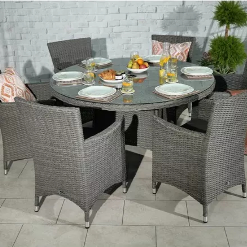 The RC Paris 6 Seater Rattan Carver Round Dining Set offers the perfect setting for outdoor lunch or dining or to simply relax with a drink. Made from the highest quality polyethylene double round wicker around a rigid aluminium frame it’s durable and weather resistant, making this set the ideal choice for dining with friends and family. This Dining Set will provide a delightful place to host lunches and dinners, and its sheer heaven to eat breakfast outside on a spring and summer day. Whether you opt for an outdoor dining garden furniture set which boasts a dining table and armchairs for a smart, cohesive look or a table set with foldable, stackable or reclining seats for practicality and space saving. The RC Paris 6 Seater Rattan Carver Round Dining Set is home delivered for ultimate convenience, removing the hassle of going out to a garden furniture centre. Our fast and free* delivery service ensures your furniture is delivered as fast as possible.