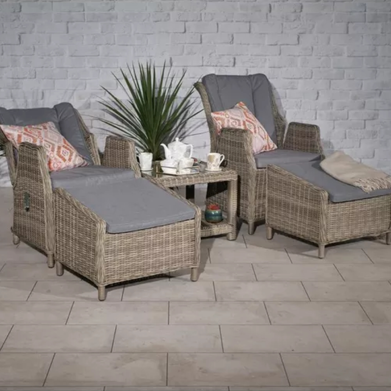 The RC Wentworth 2 Seater Comfort Rattan Recliner Companion Set is perfect for that al-fresco dining experience with its timeless design. Retaining classic style with an aluminium framework construction and hand-woven, synthetic, half-round weave rattan, this set offers style, comfort, strength and durability. Complete with a tempered glass top table and two high-back comfort gas-operated recliner chairs with footstools. This Recliner Companion Set can be a haven for peaceful sitting, social events and enjoying the nature of British spring and summer. Where we like to enjoy a moment of self-care and relaxation, two seat relaxer and lounger sets can become a perfect place to sit back and chill out. The RC Wentworth 2 Seater Comfort Rattan Recliner Companion Set is home delivered for ultimate convenience, removing the hassle of going out to a garden furniture centre. Our fast and free* delivery service ensures your furniture is delivered as fast as possible.