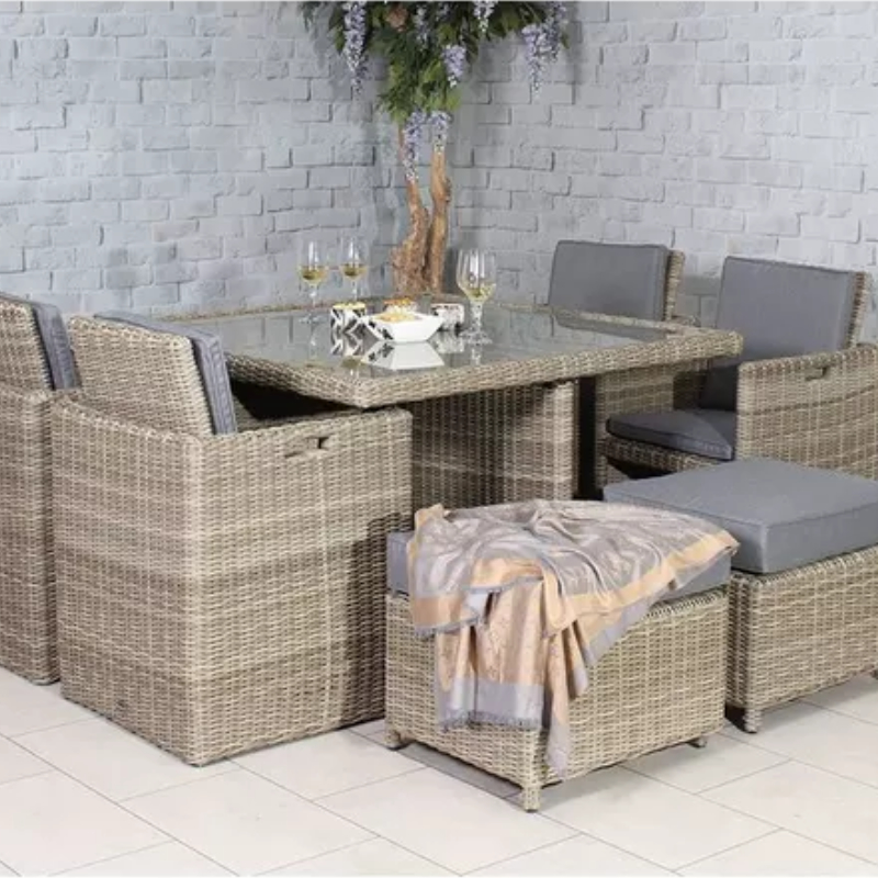 The RC Wentworth 8-Seater Rattan Cube Set with Adjustable Table has a timeless design and practical space-saving storage and is one of our best-selling products. Retaining classic style with an aluminium framework and hand-woven, synthetic, half-round weave rattan, this set offers style, comfort, strength and durability. Complete with a rectangular cube table, cube chairs with folding backrests and footstools that store away compactly inside the chairs, its cubic design allows it all to be stored away ensuring minimal space is taken up. This Lounging Sofa Set is the perfect place to relax and entertain for the warmer months ahead of us, this garden furniture lounging set creates a social space instantly. This Rattan Cube Set creates a more laidback atmosphere, it is also a designated area for putting your feet up during the summer, sipping on a glass of wine and reading a book on a warm afternoon. The RC Wentworth 8 Seater Rattan Cube Set with Adjustable Table is home delivered for ultimate convenience, removing the hassle of going out to a garden furniture centre. Our fast and free* delivery service ensures you have your furniture delivered as fast as possible.