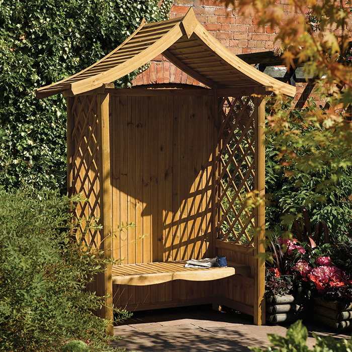 The Rowlinson Tenbury Arbour is a high quality garden seat with a solid back and open lattice sides, giving a light airy feel. Manufactured from certified sustainably sourced timber and pressure treated to protect against rot for up to 15 years.