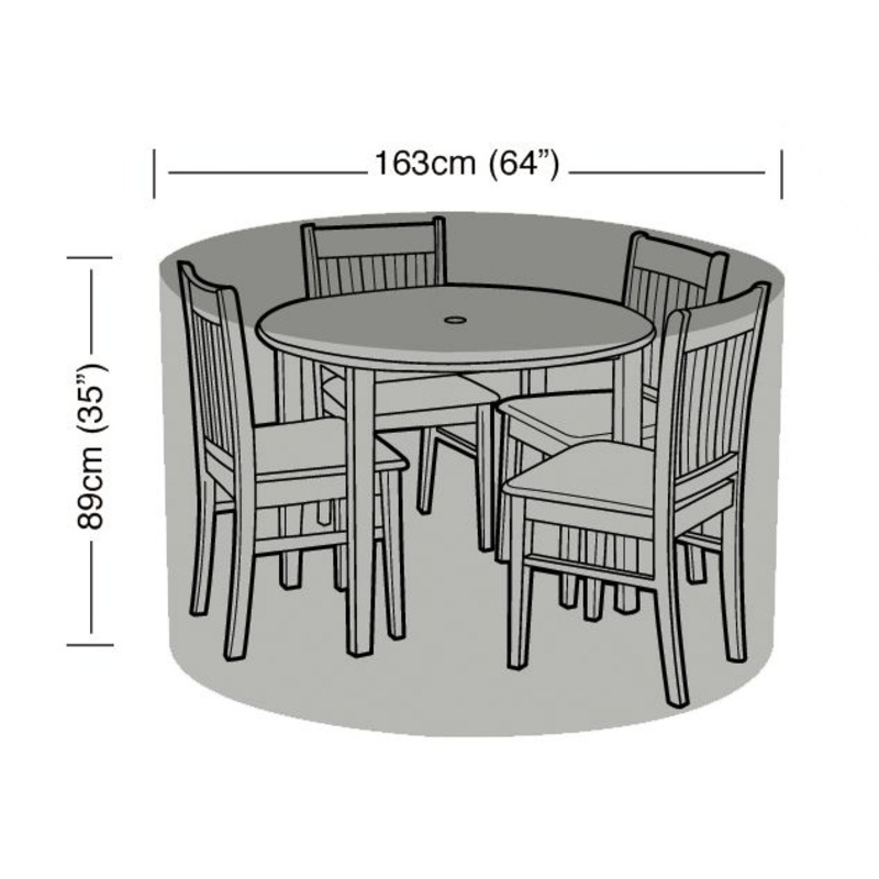 Designed to cover and protect the table and chairs of a traditional 4 seater round garden dining set. The Super Tough 4 Seater Round Furniture Set Cover in Green is made from multi-layered cross laminated polyethylene grade material. The Super Tough garden furniture cover range features our unique zero fade technology, full UV protection against the sun for longer life and a wipe clean surface. The cover offers full weather protection, while also protecting your dining set from bird droppings, tree sap & pollution. All round draw string bottom with cord locks are included for added security. Centre Water Shedding Poles are available and are reccommended to raise the cover above the tops of your chairs and prevent water pooling. Important: Do not leave your cushions on your furniture when covered.