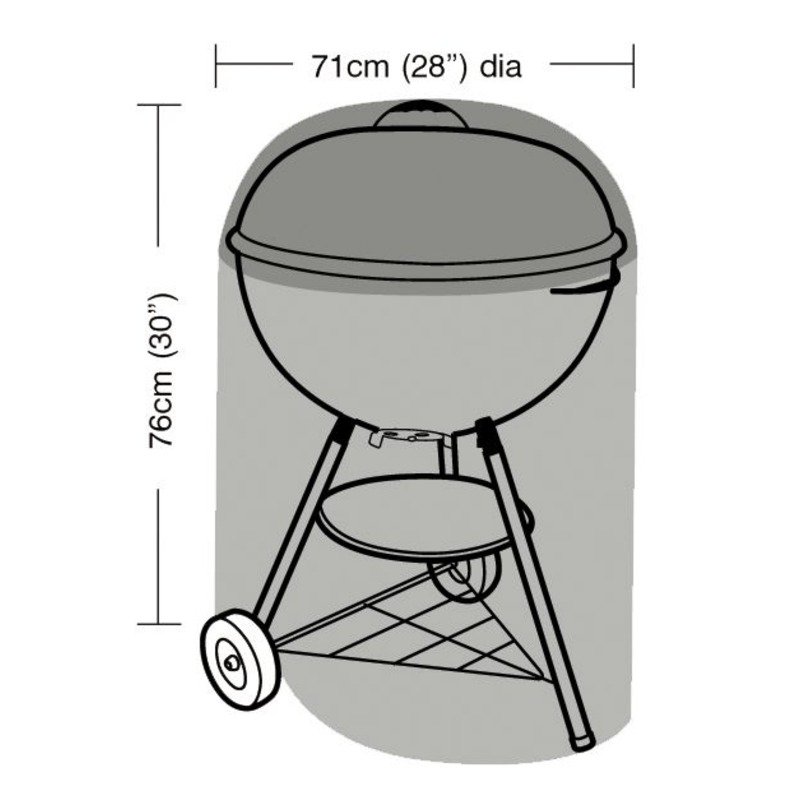 The Super Tough Kettle Barbecue Cover in Green is made from multi-layered cross laminated polyethylene grade material. The Super Tough garden furniture cover range features our unique zero fade technology, full UV protection against the sun for longer life and a wipe clean surface. The cover offers full weather protection, while also protecting your barbecue from bird droppings, tree sap & pollution. All round draw string bottom with cord locks are included for added security. Important: Always allow the barbecue to cool fully before covering.